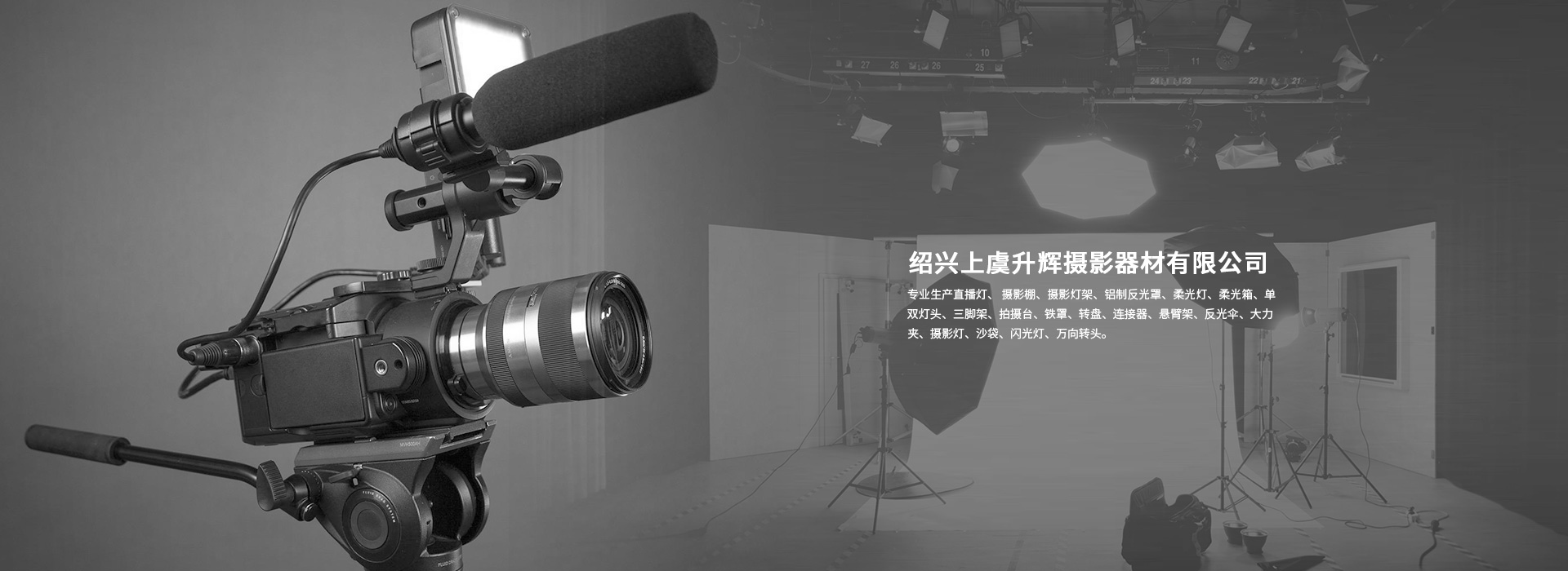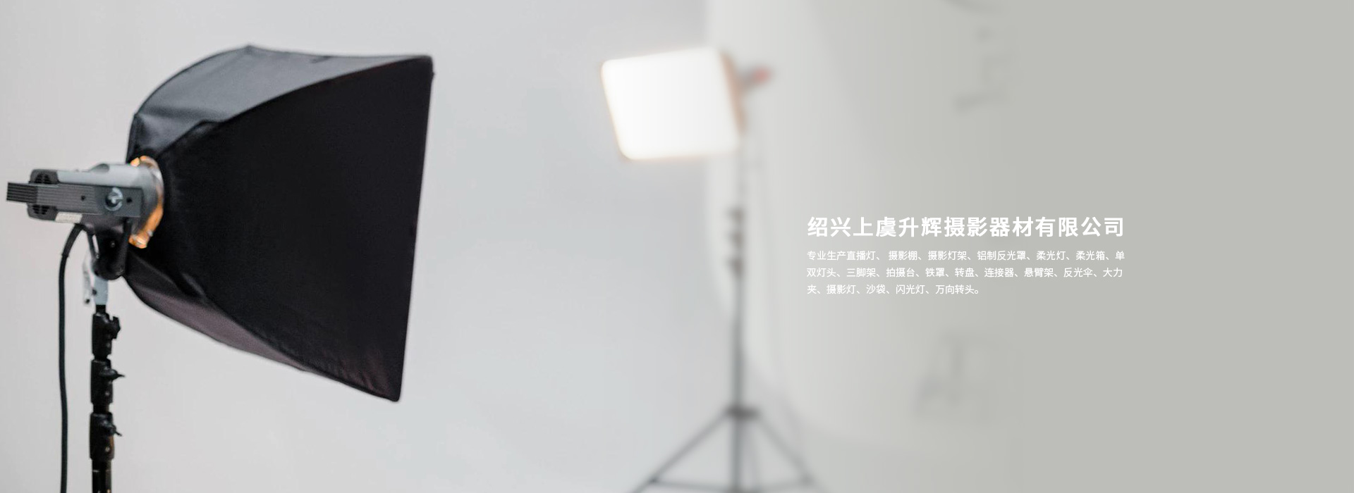 紹興上虞升輝攝影器材有限公司專業(yè)生產(chǎn)直播燈、 攝影棚、攝影燈架、鋁制反光罩、柔光燈、柔光箱、單雙燈頭、三腳架、拍攝臺(tái)、鐵罩、轉(zhuǎn)盤、連接器、懸臂架、反光傘、大力夾、攝影燈、沙袋、閃光燈、萬(wàn)向轉(zhuǎn)頭。